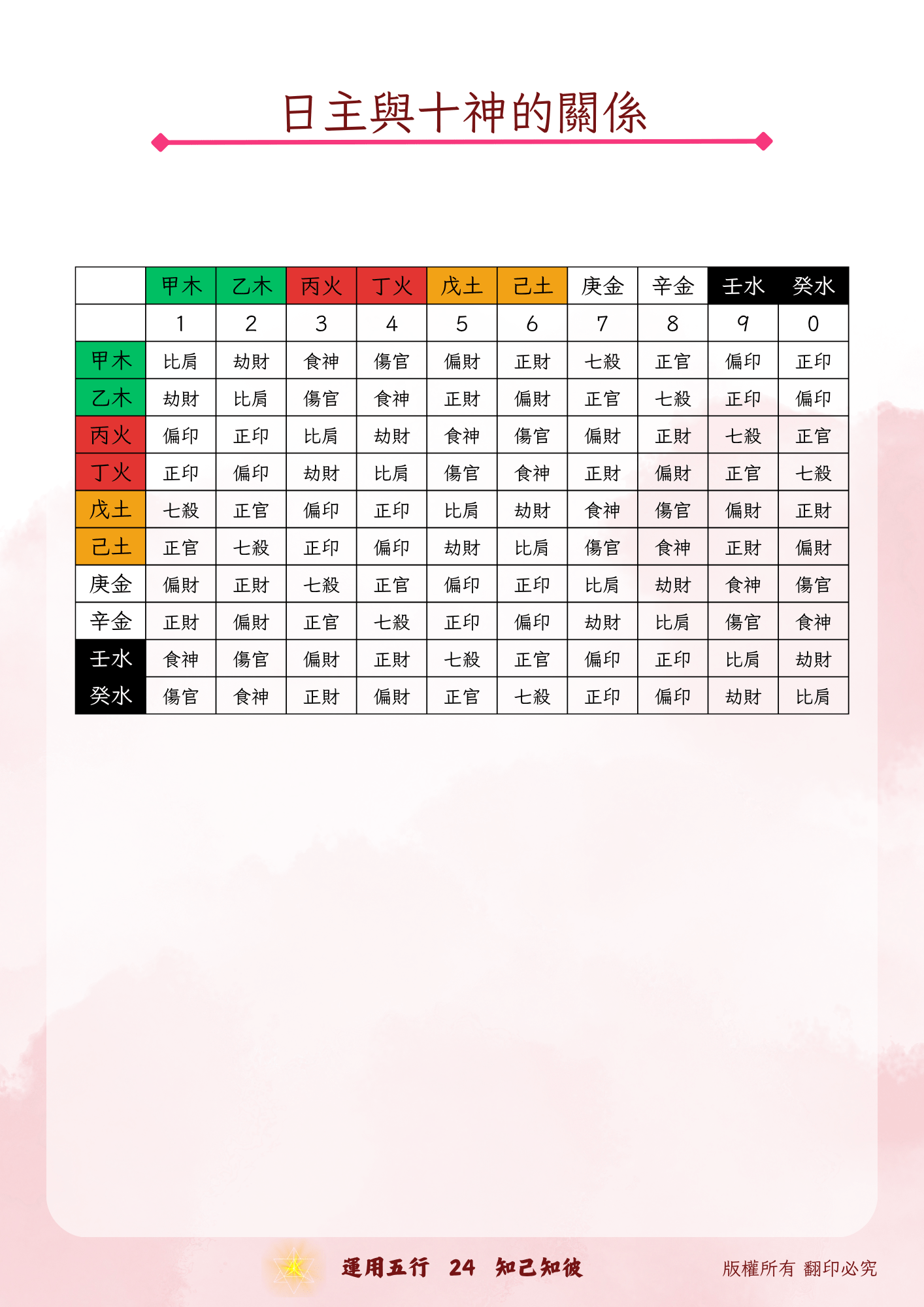 深入掌握八字十神體系,能準確說明各個十神所代表的人生命題,並靈活運用十神來剖析命盤的重點與細節。