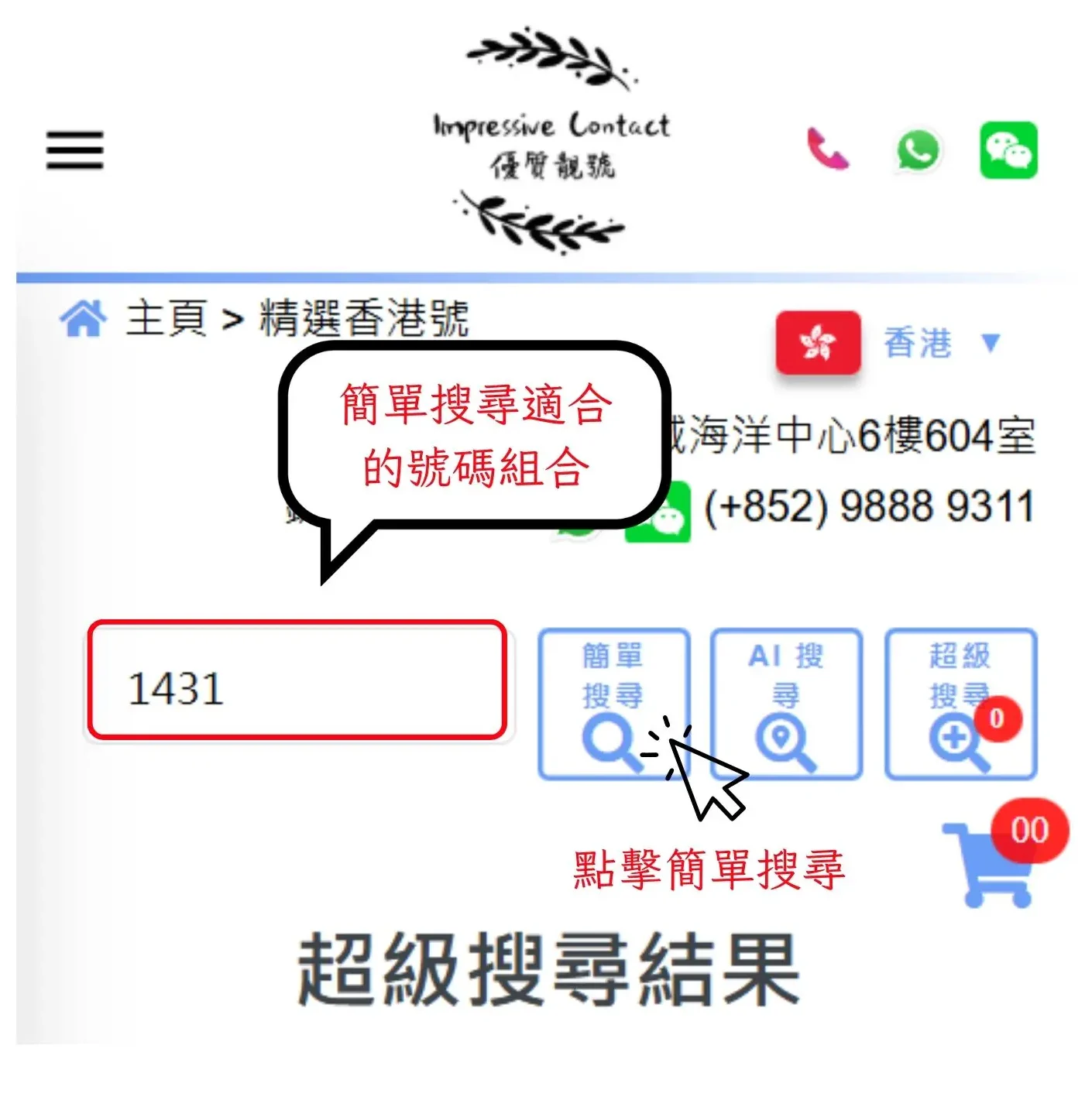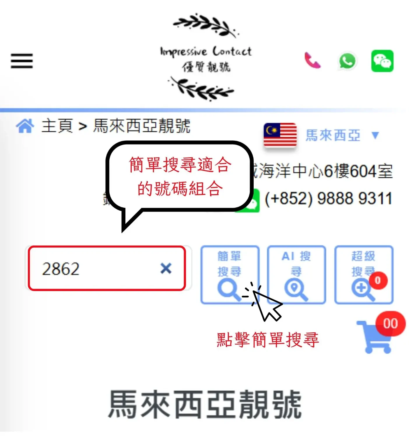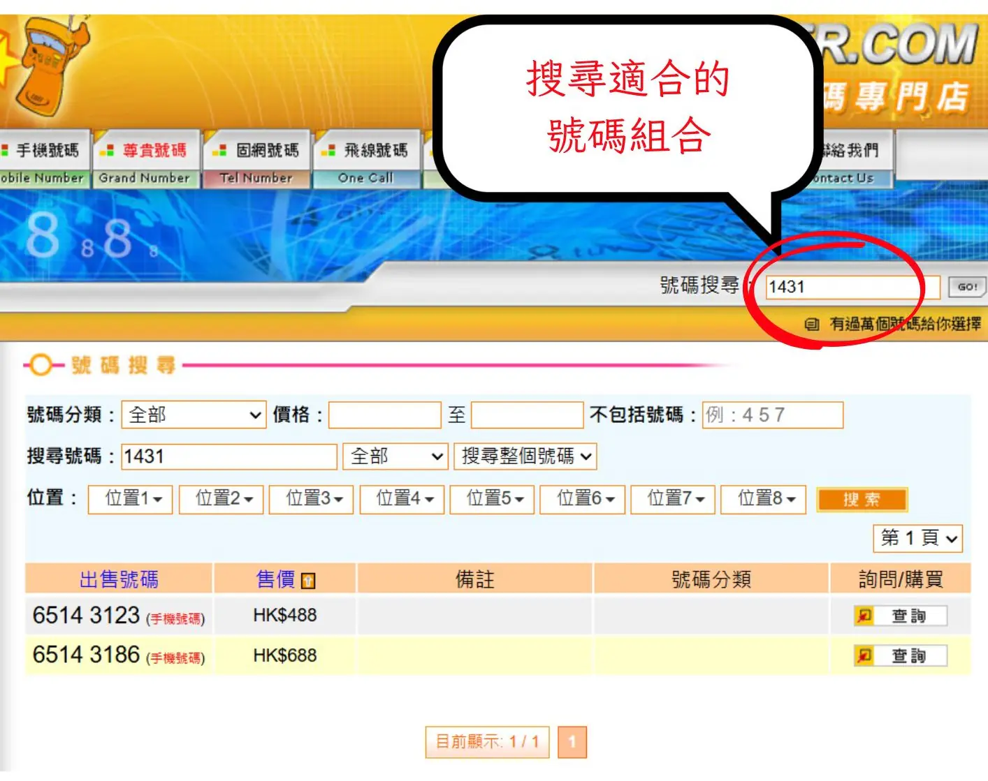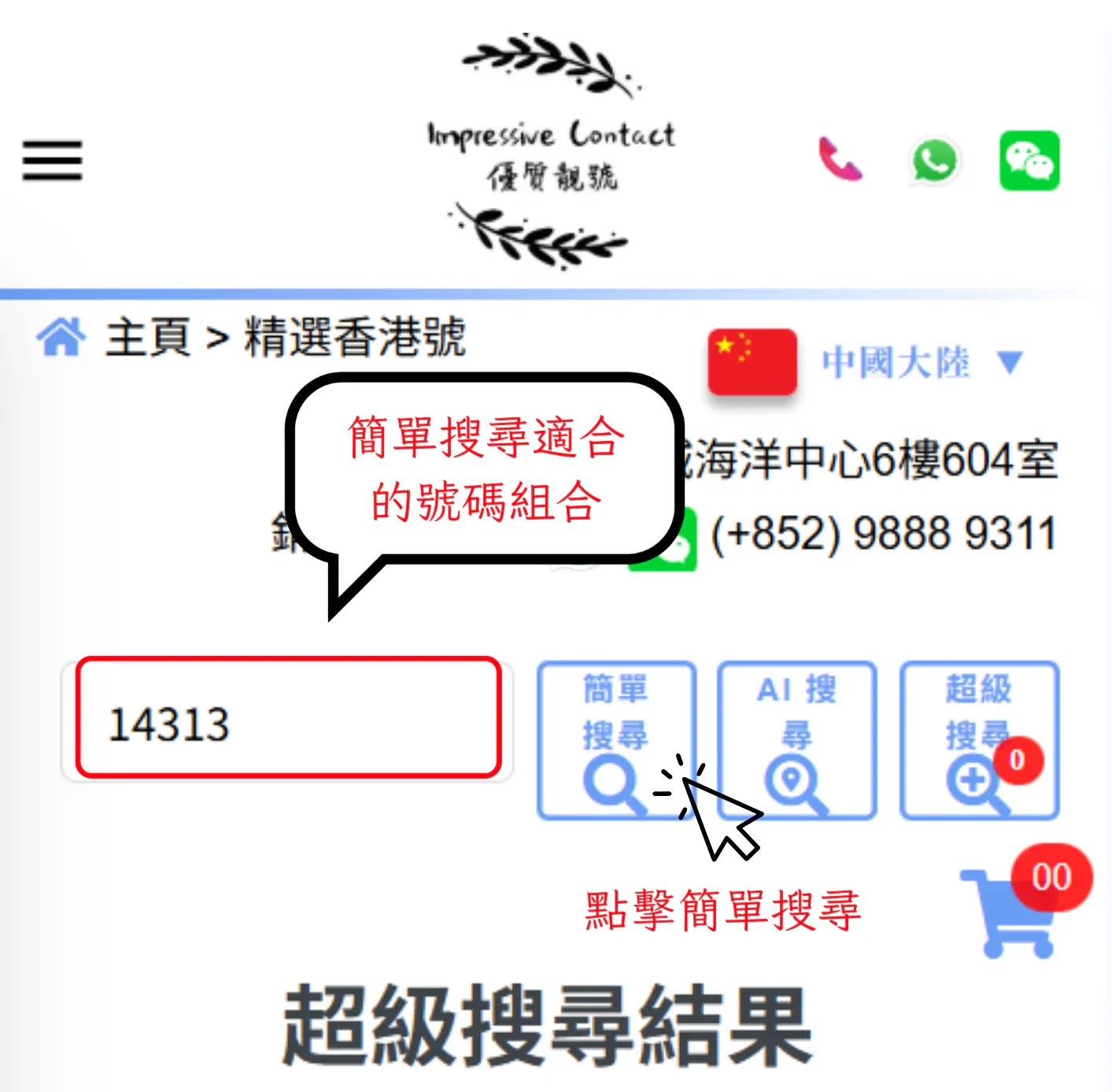 根据以上配对单,以下为在 優質靚號 购买手机号码的操作步骤说明。