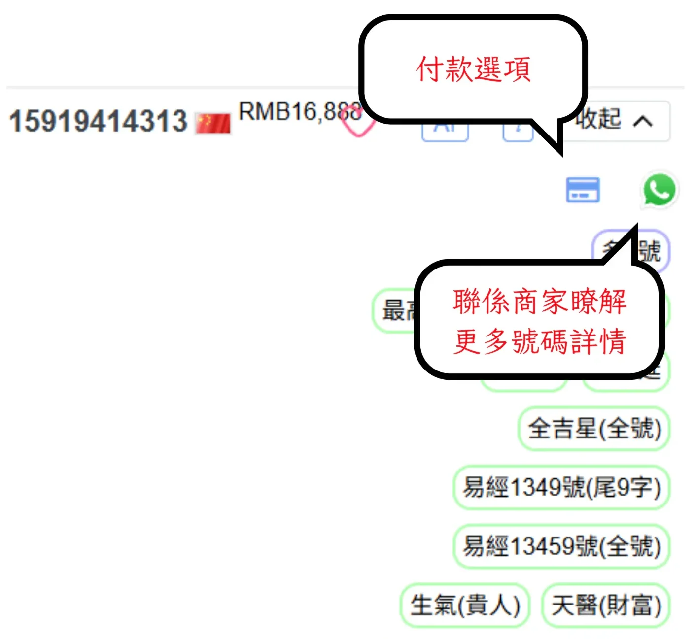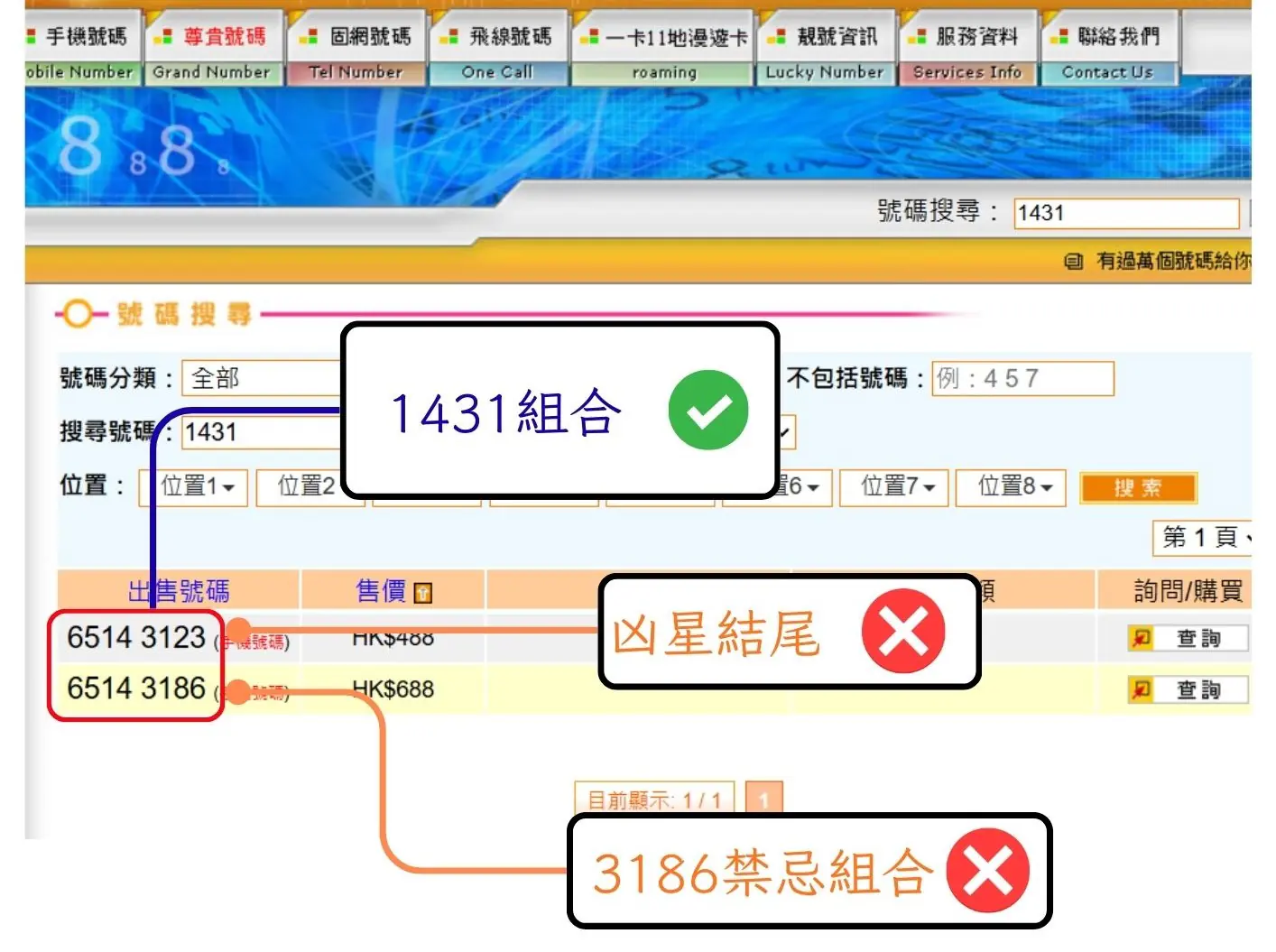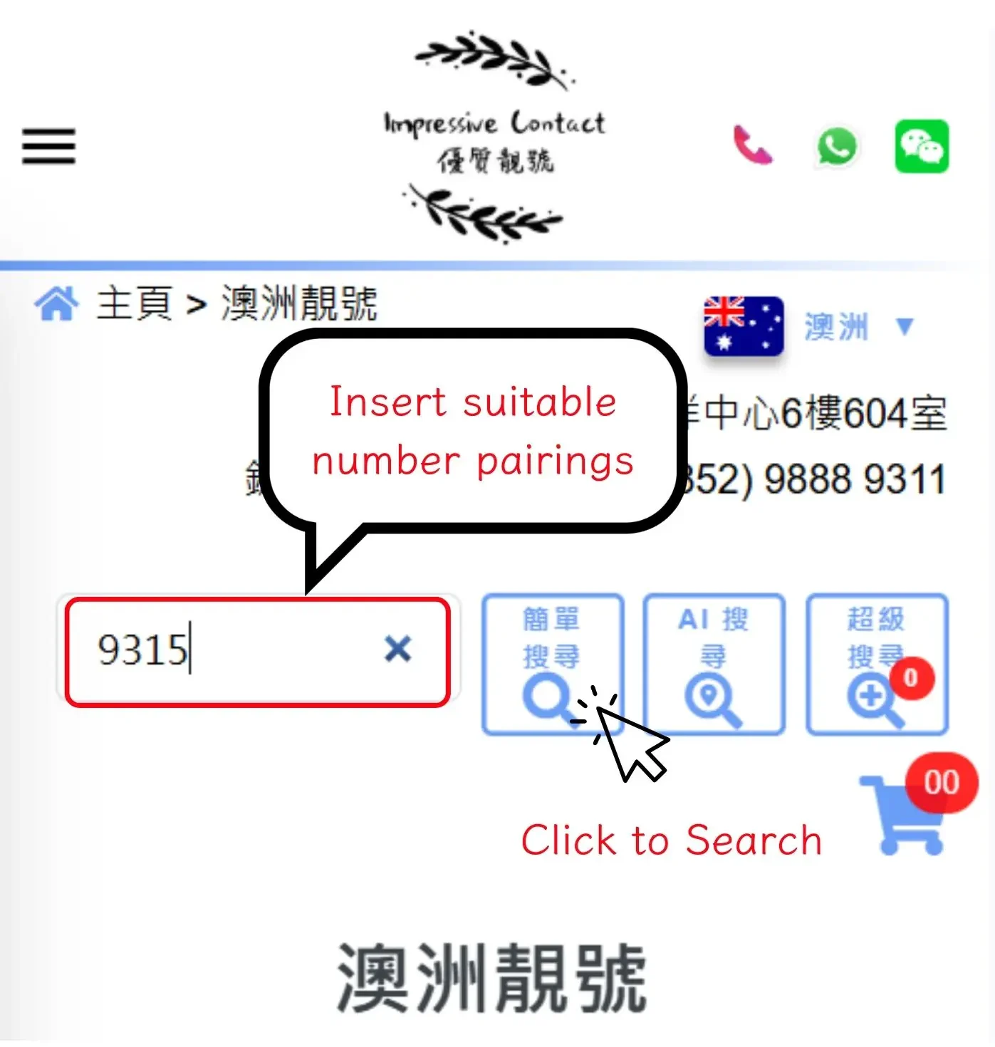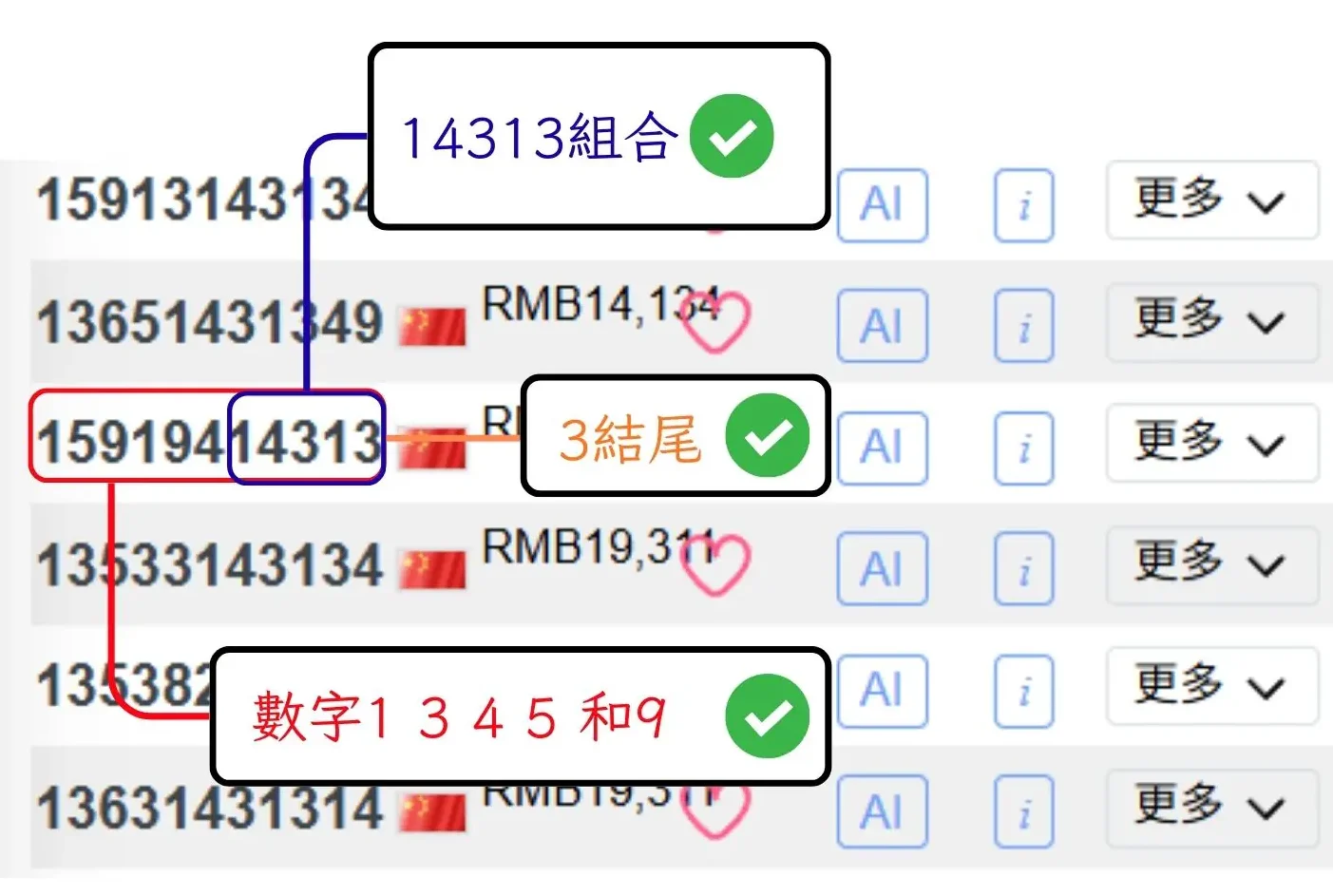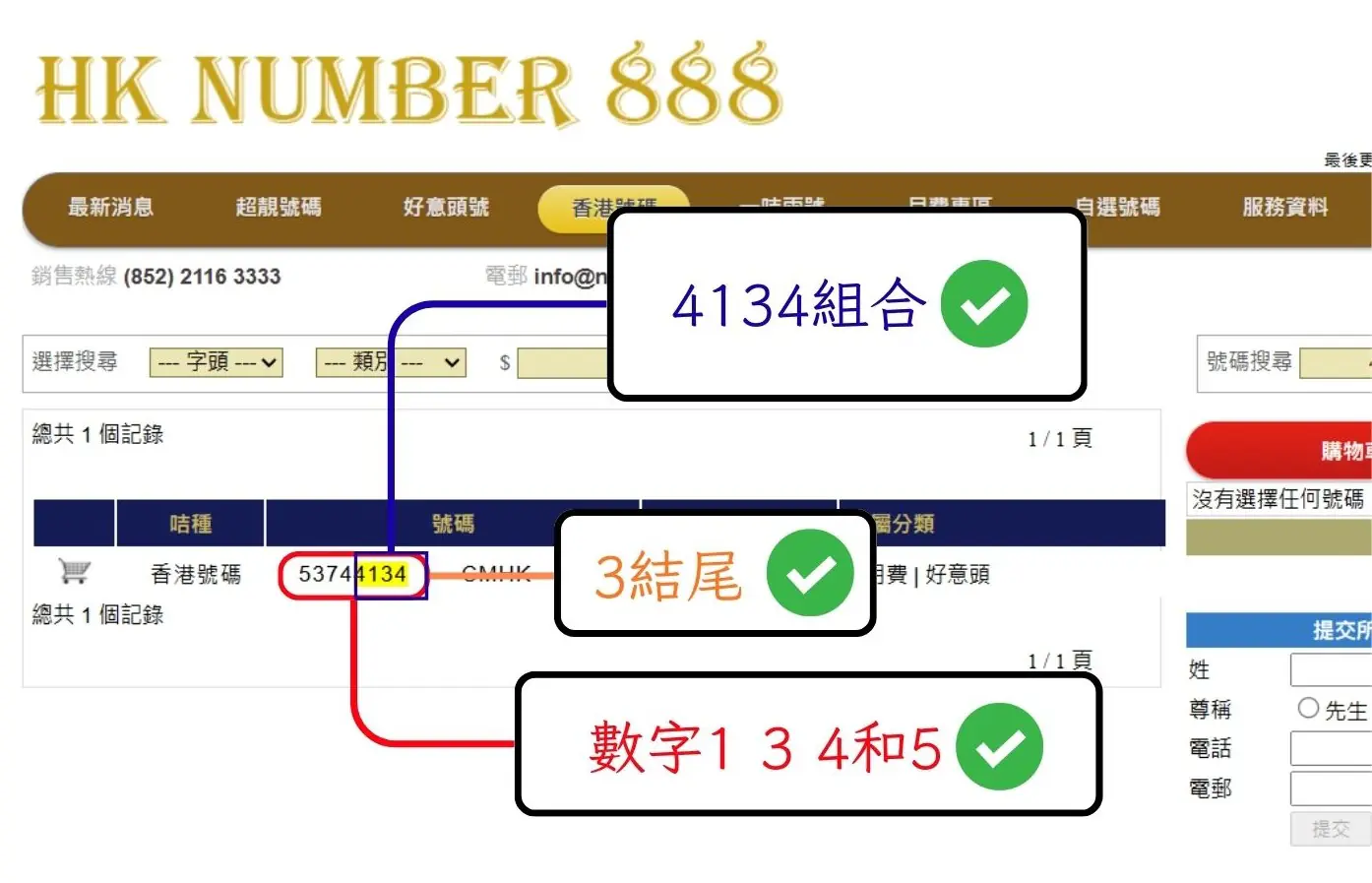 根据以上配对单,以下为在 優質靚號 购买手机号码的操作步骤说明。