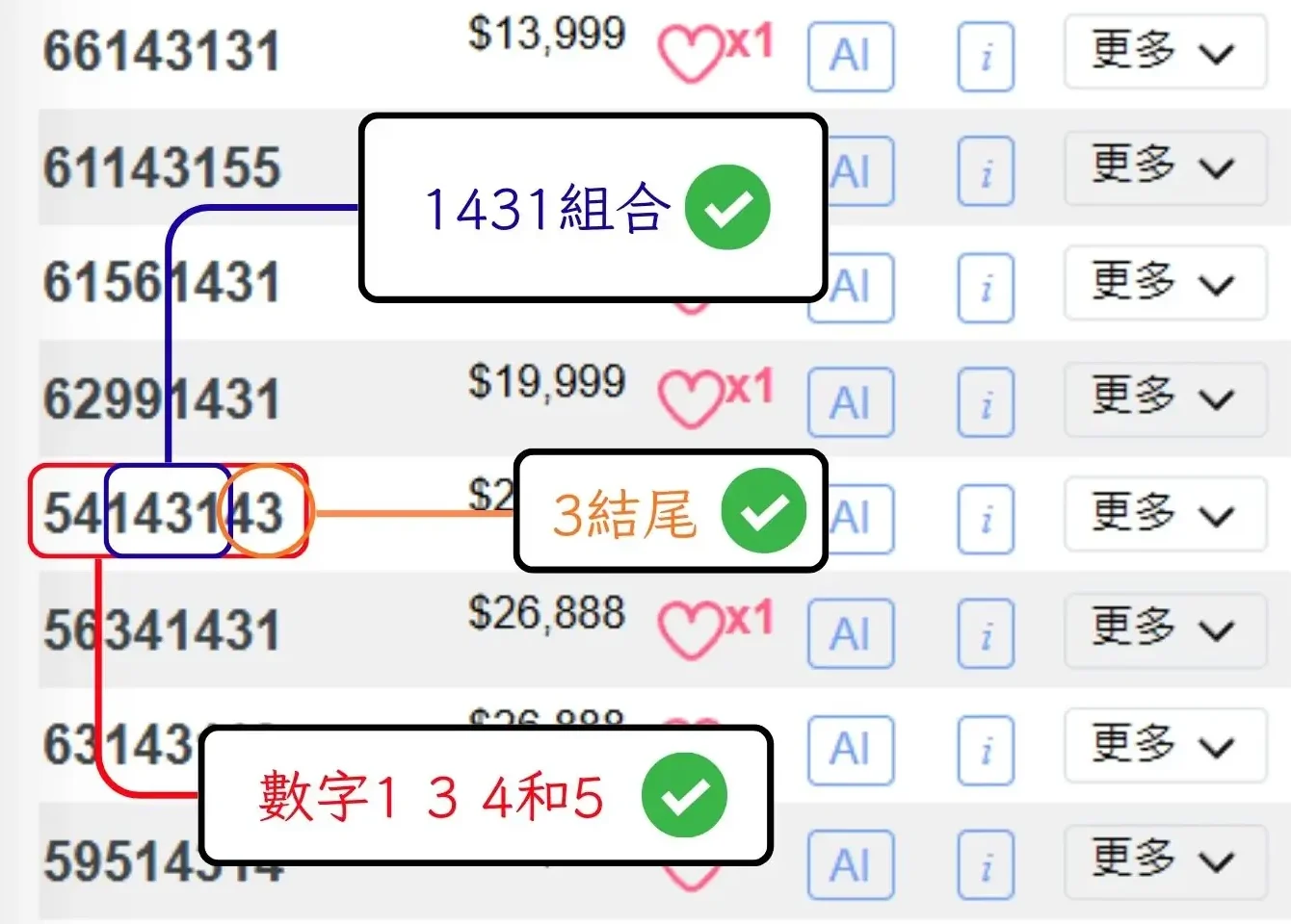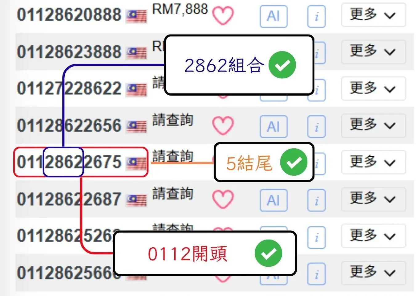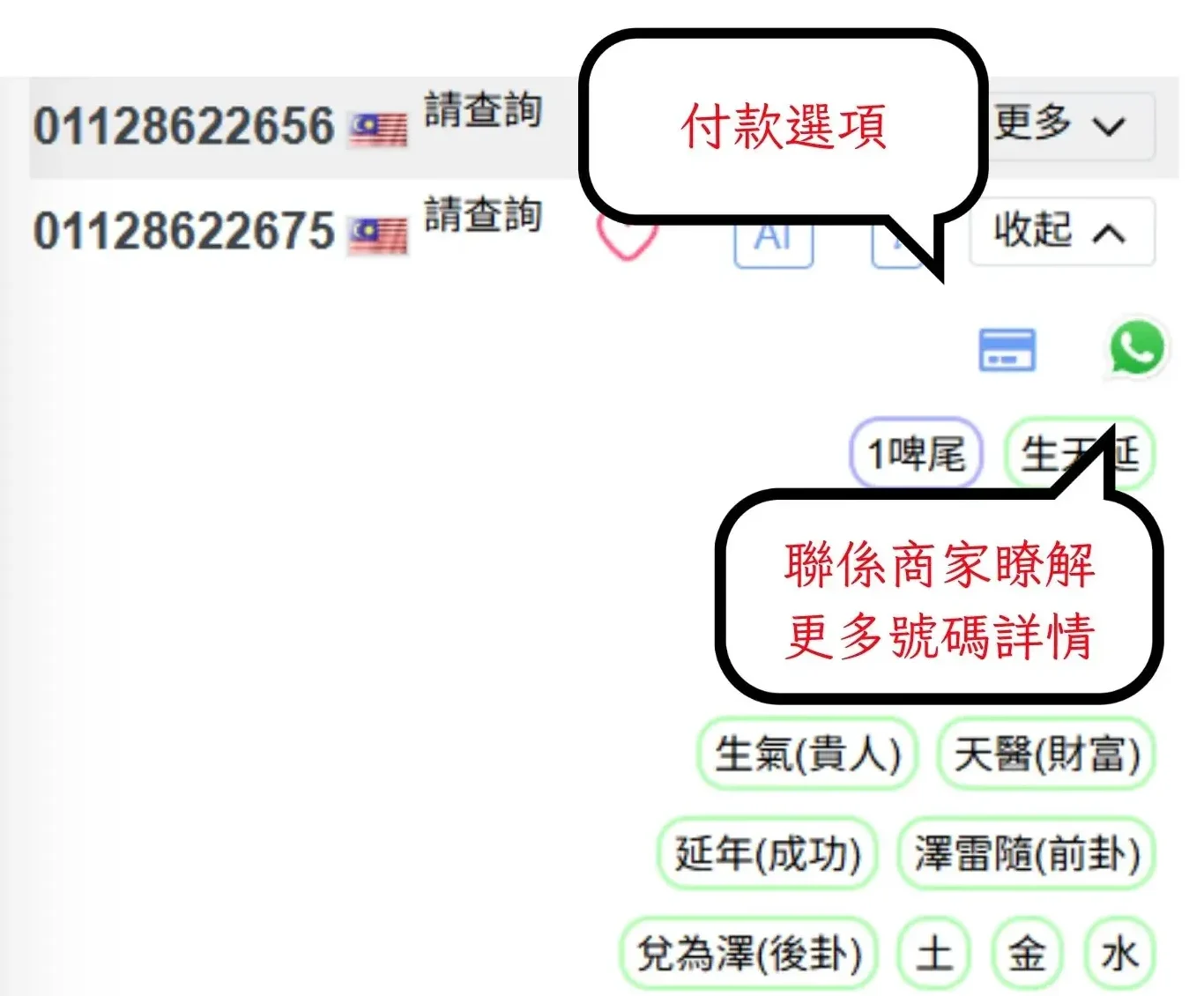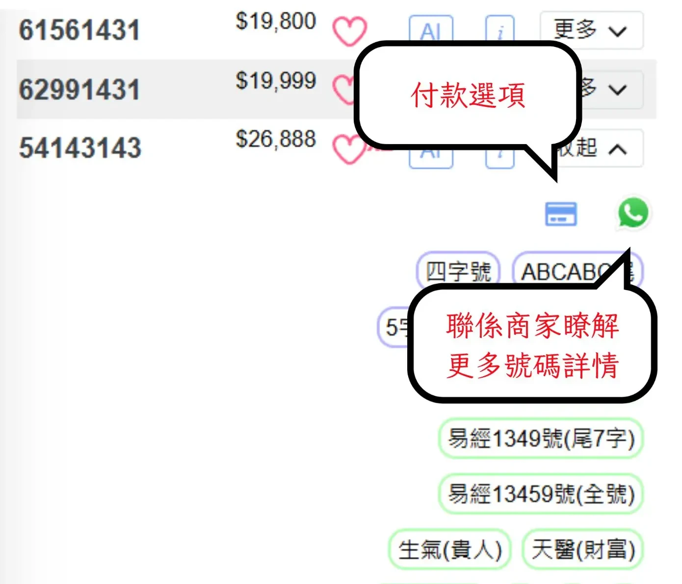根据以上配对单,以下为在 優質靚號 购买手机号码的操作步骤说明。