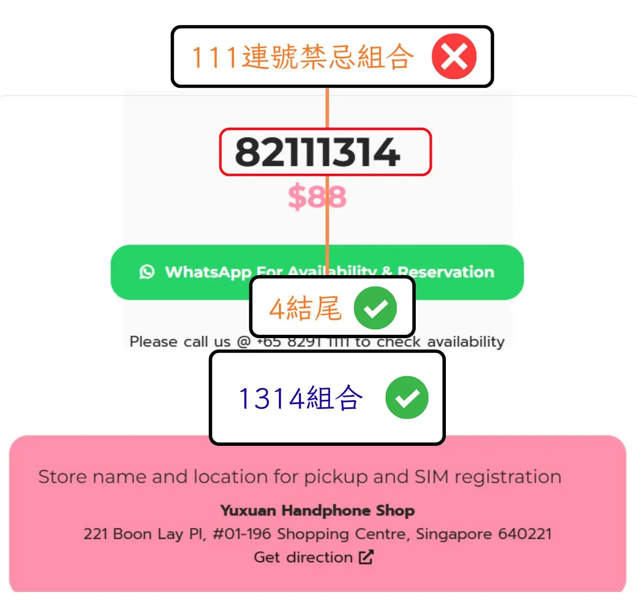 根據以上配對單,這是在 靚號皇 Pop Number Store 購買手機號碼操作步驟。