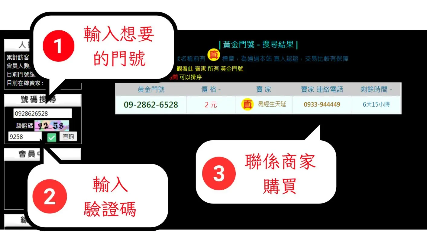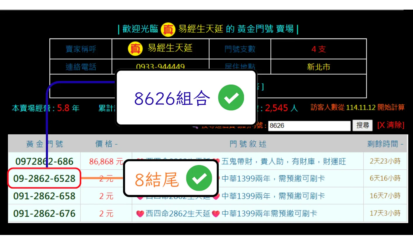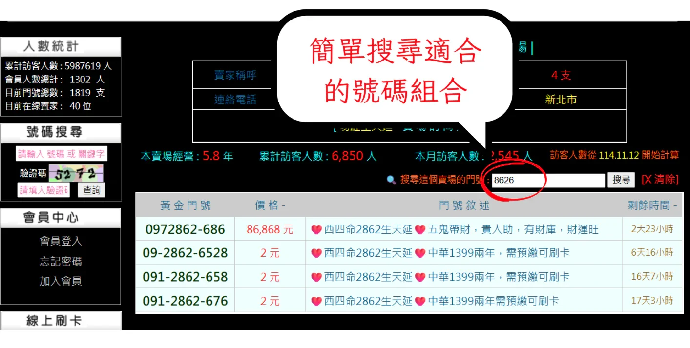 学员依照報告中的数字配對建议到门号平台寻找适合自己的手机号码。