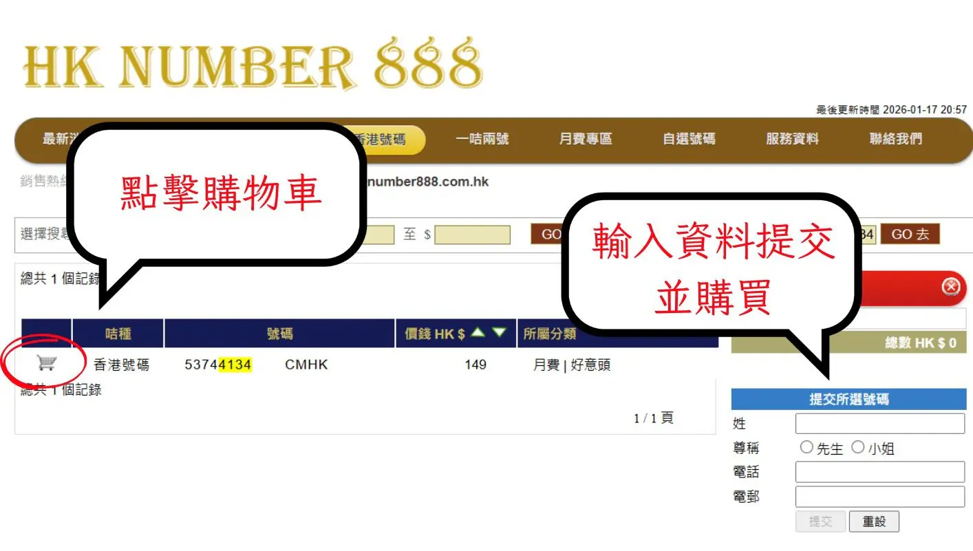 根據以上配對單,這是在VIP Number Store 購買手機號碼操作步驟。