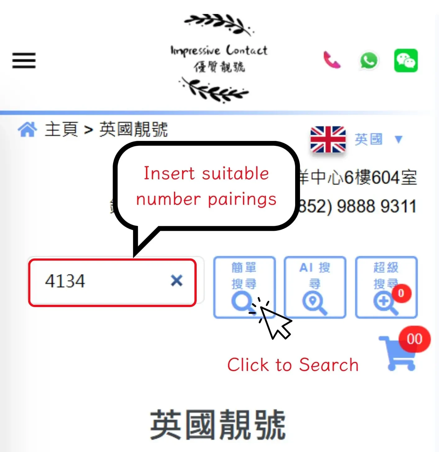根據以上配對單,這是在 優質靚號 Impressive Contact 購買手機號碼操作步驟。