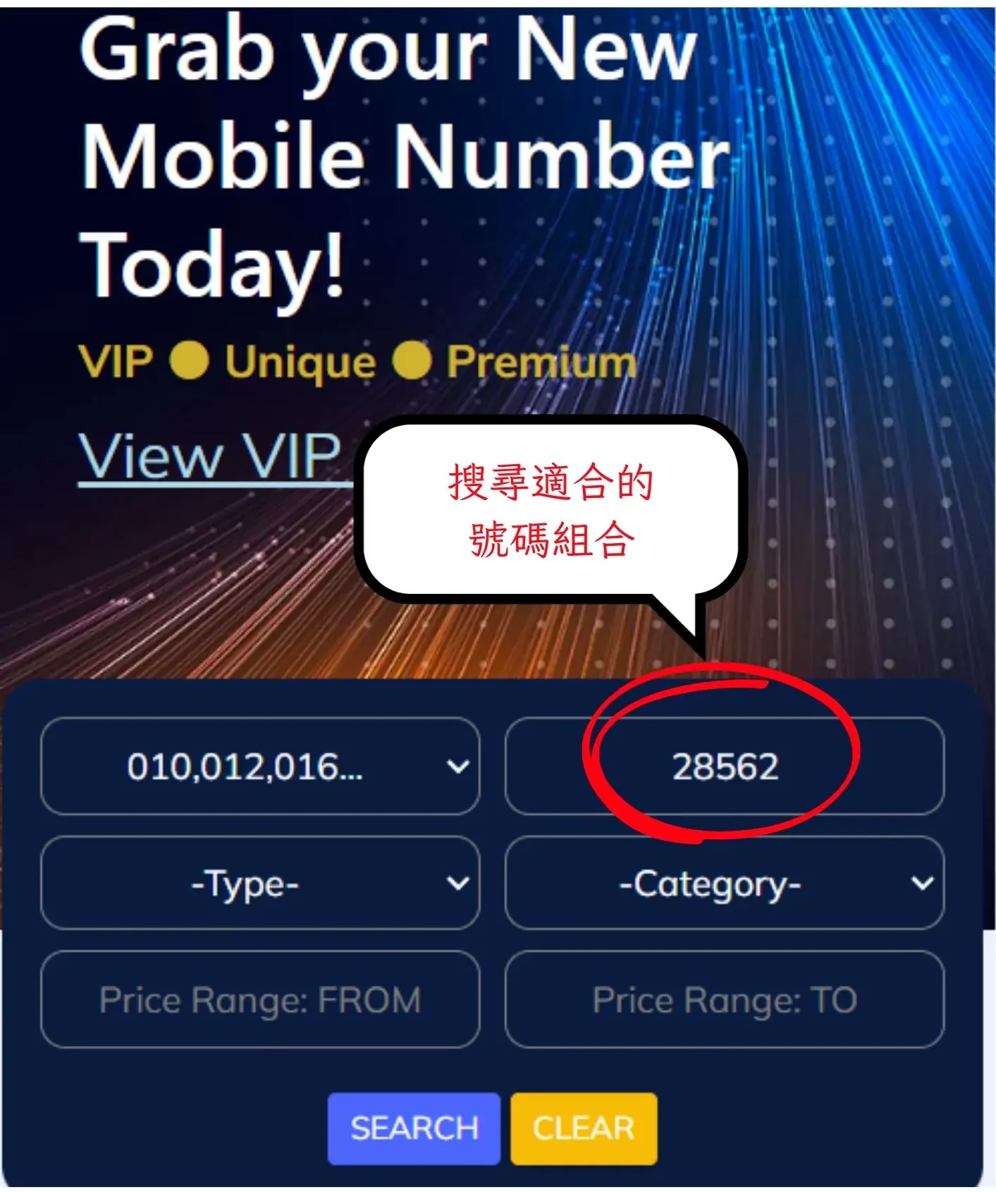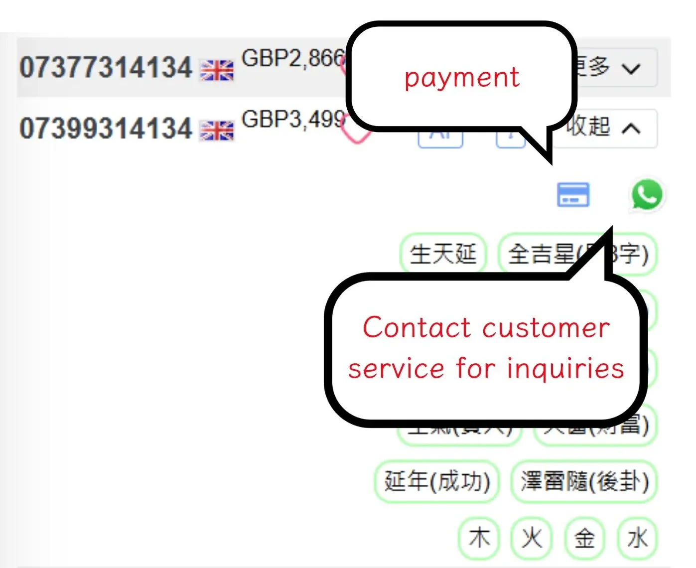 找到適合的號碼後,請點擊下方橙色連結客服進行後續處理。VIP Number Store