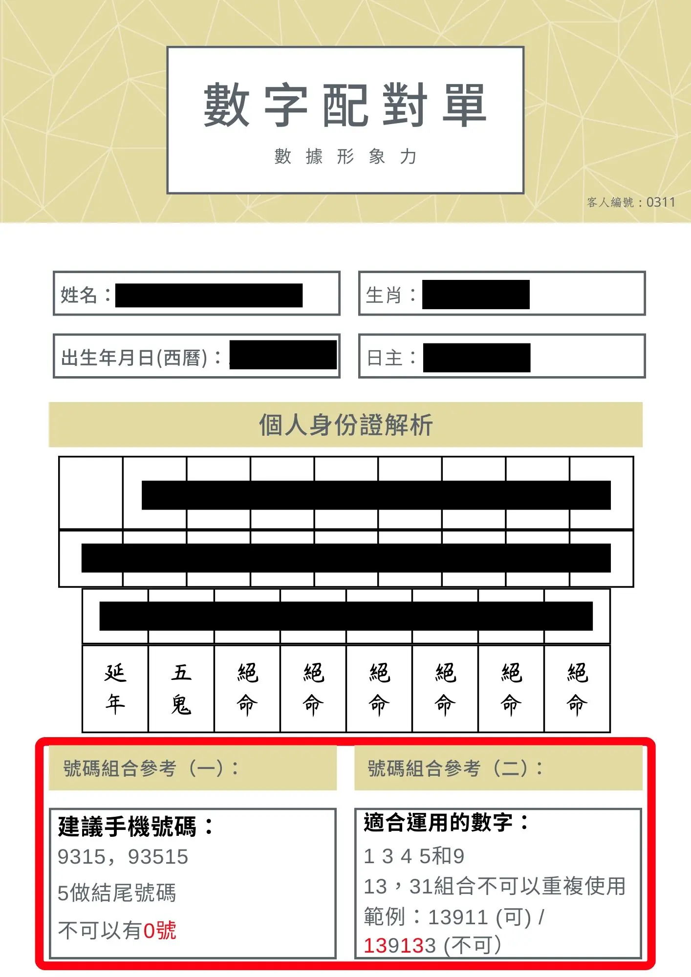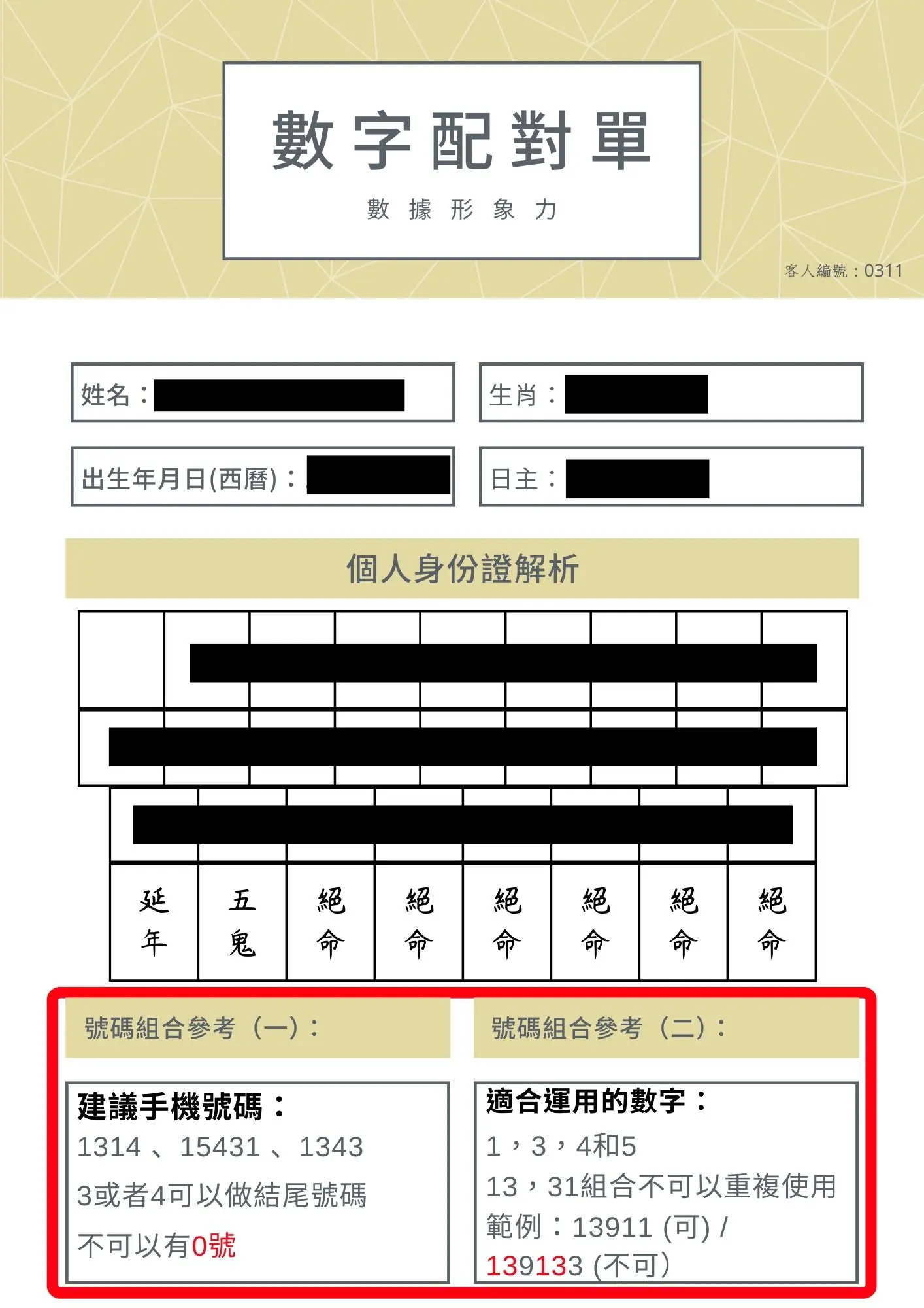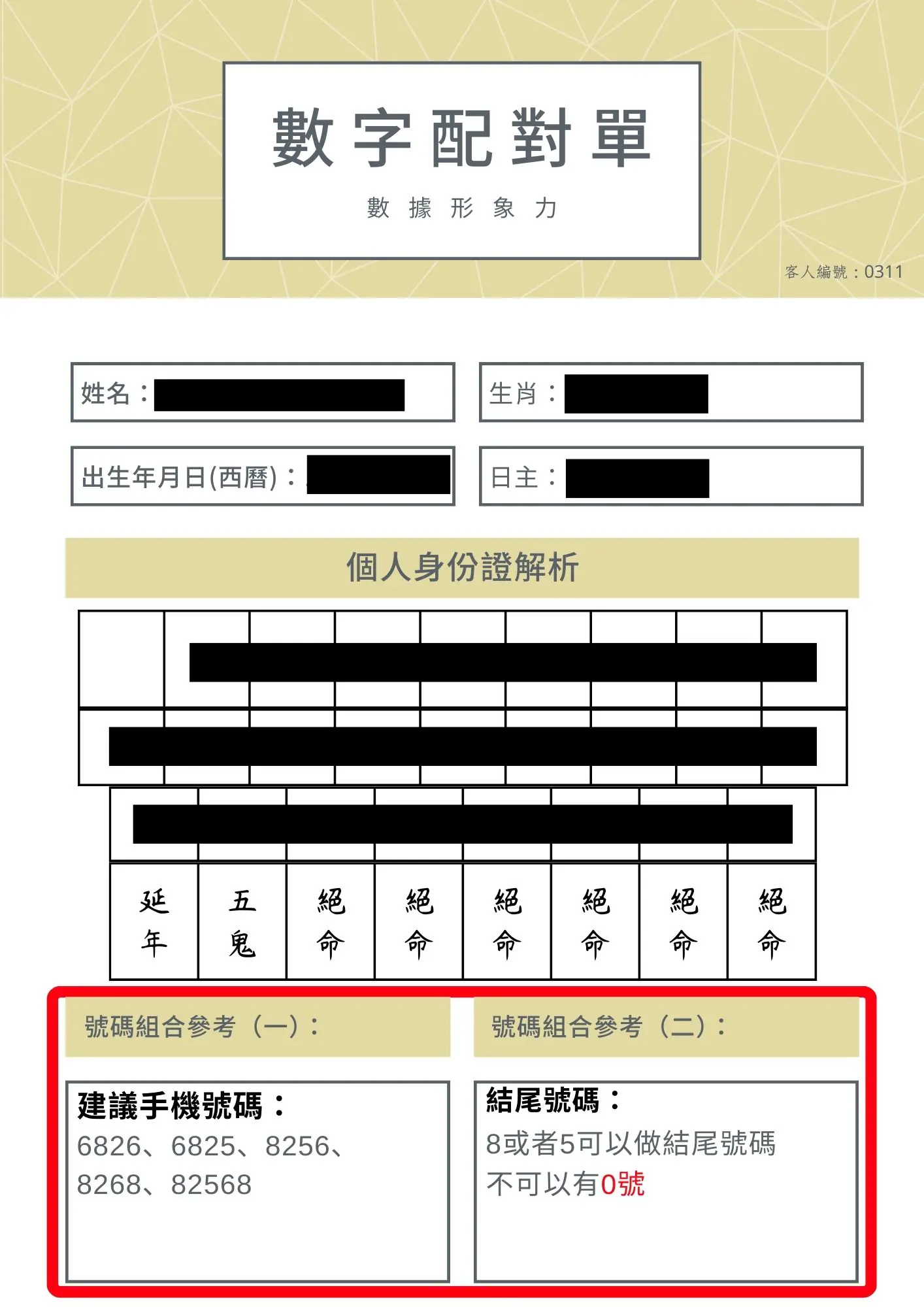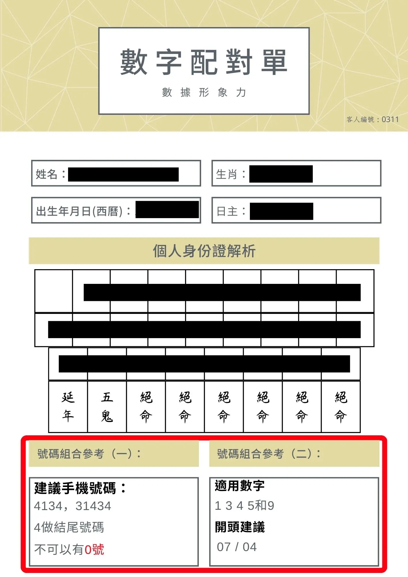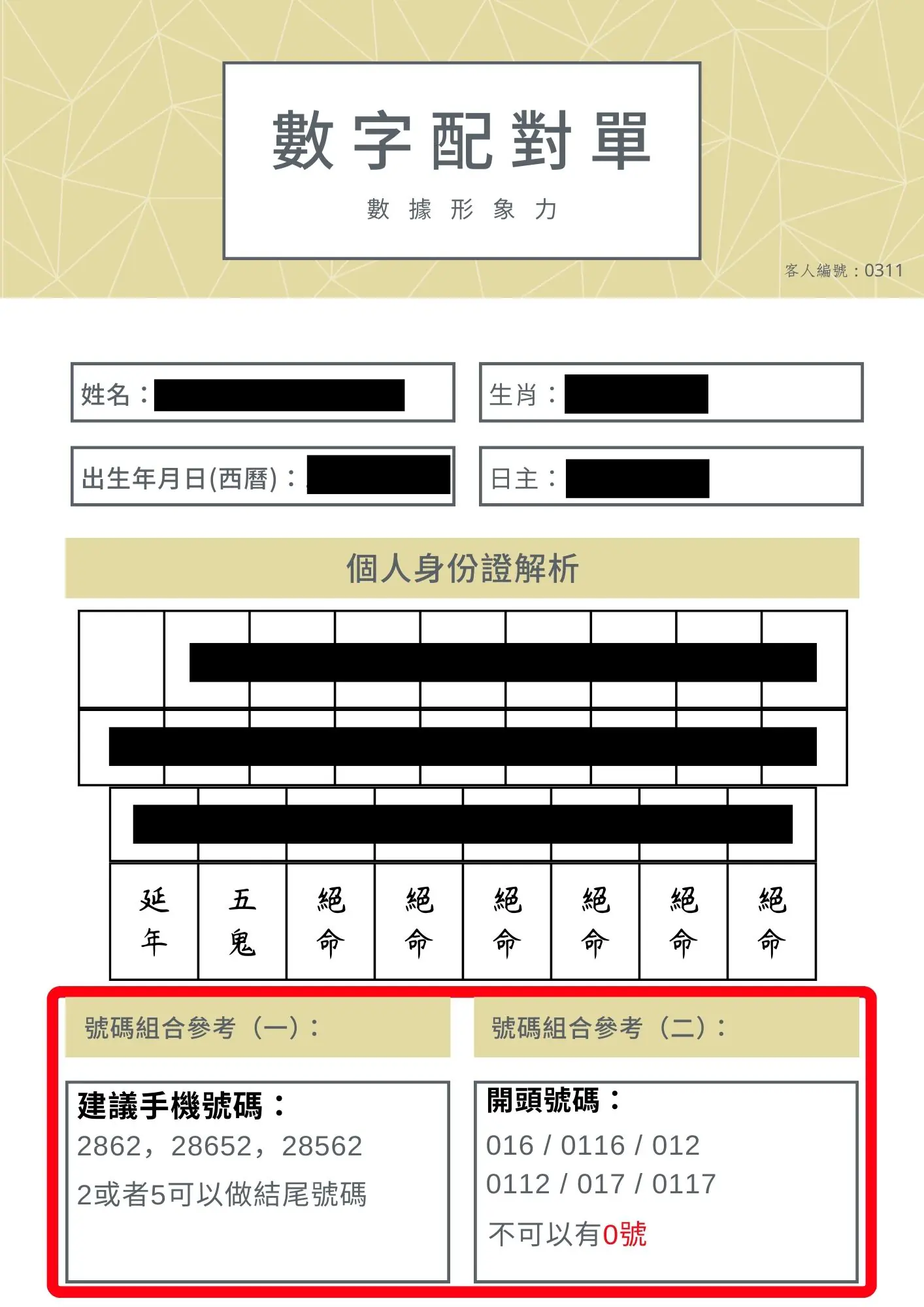 當你购买我們的换号服务,完成個人资料与命盘分析后,你将会收到一份 专属於你的《命盤分析報告書》。