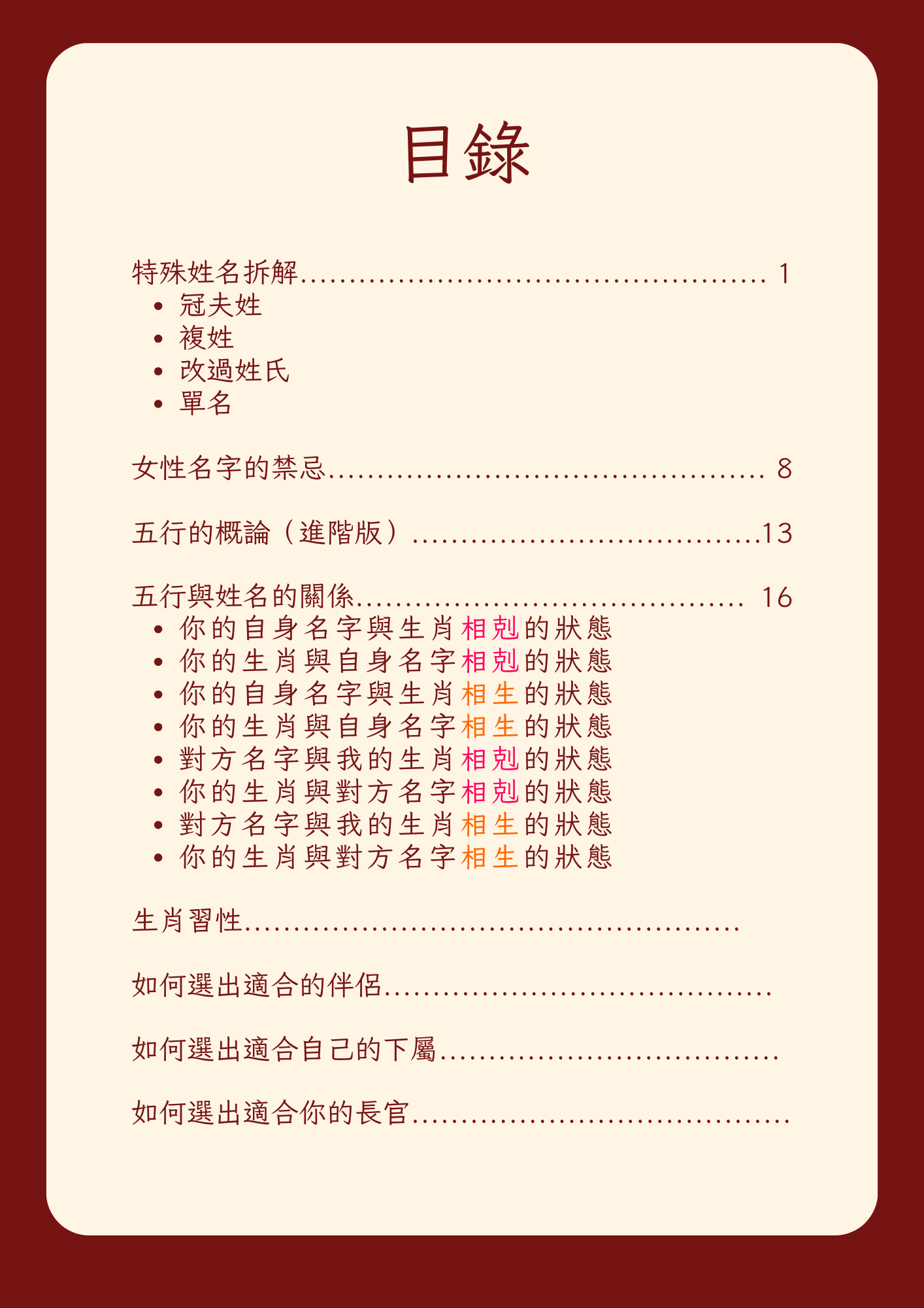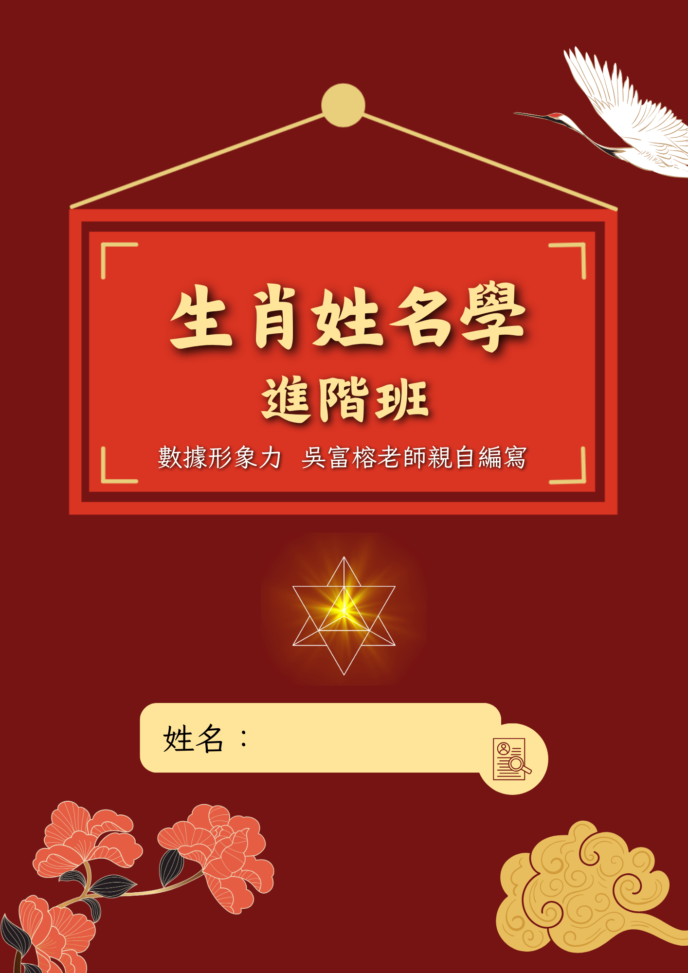 在 Level 2 姓名學課程中,您將進一步晉升為姓名能量解析的高手。這一次,我們將揭開隱藏在姓氏與名字深處的秘密:無論是特殊的複姓、改姓的案例,還是女性姓名中暗藏的玄機,都將一一為您解析。您會發現,一個名字的細微變化如何牽動一生的情感與財富走向——彷彿透過 X 光看穿姓名的骨架,洞悉其中的力量法則。同時,本課程帶您運用五行能量的進階智慧,不僅解碼姓名與健康的關聯,更實戰演練如何用姓名學選擇理想的伴侶、下屬與上司。Level 2 將以更豐富生動的案例,帶給您宛如親歷其境的體驗,全面提升您運用姓名改變人生的能力!