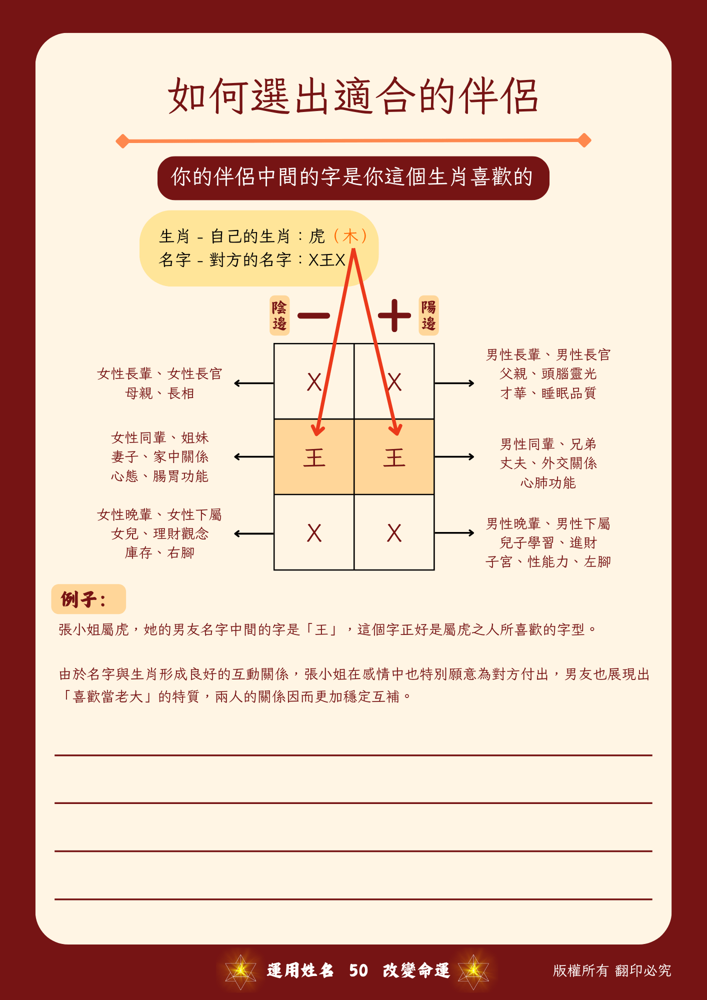 - 從他人名字選擇一個觀念相近又有助力的下屬讓你事半功倍,從下屬名字看對方追求的人生觀和價值觀以及處事態度,讓你輕鬆帶領團隊。